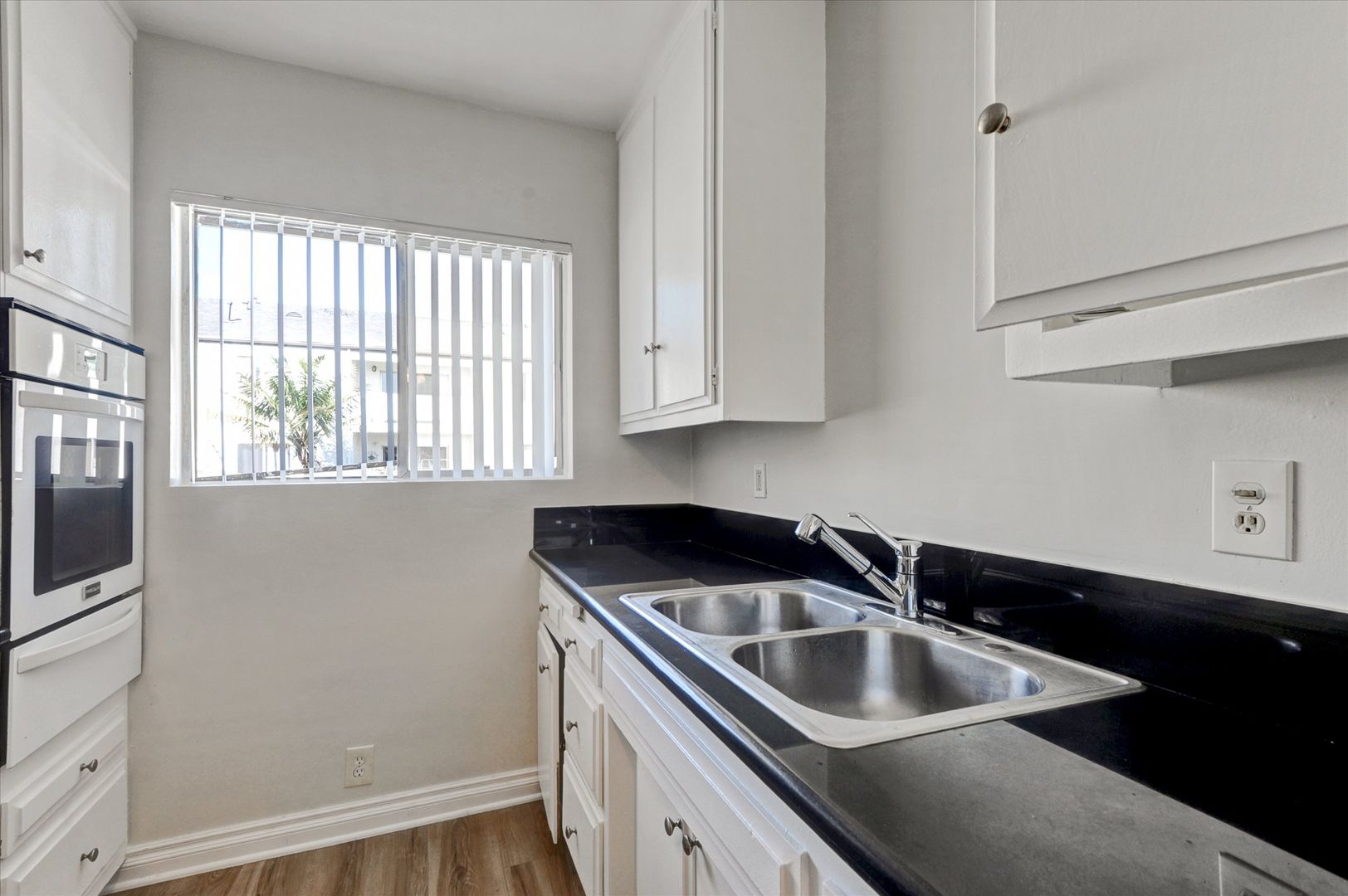 This spacious 1 bedroom apartment has everything you need including updated plank flooring, kitchen appliances including a built-in cooktop and oven, refrigerator, separate dining area and large closets. The unit is on the second floor of a small, gated, smoke-free complex in a quiet residential neighborhood. Community laundry is located onsite. We're kitty friendly with an additional deposit (sorry, no dogs).