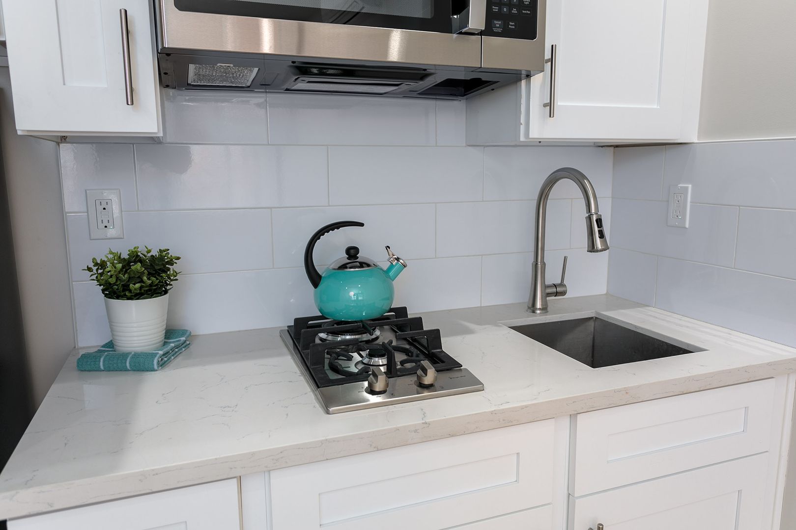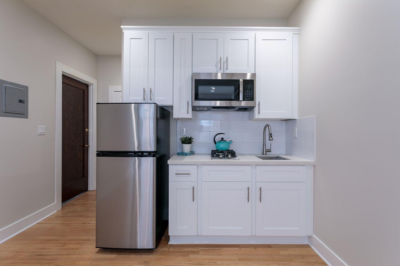 COMPLETELY NEW kitchen w/ stainless steel cooktop, stainless microhood and stainless refrigerator