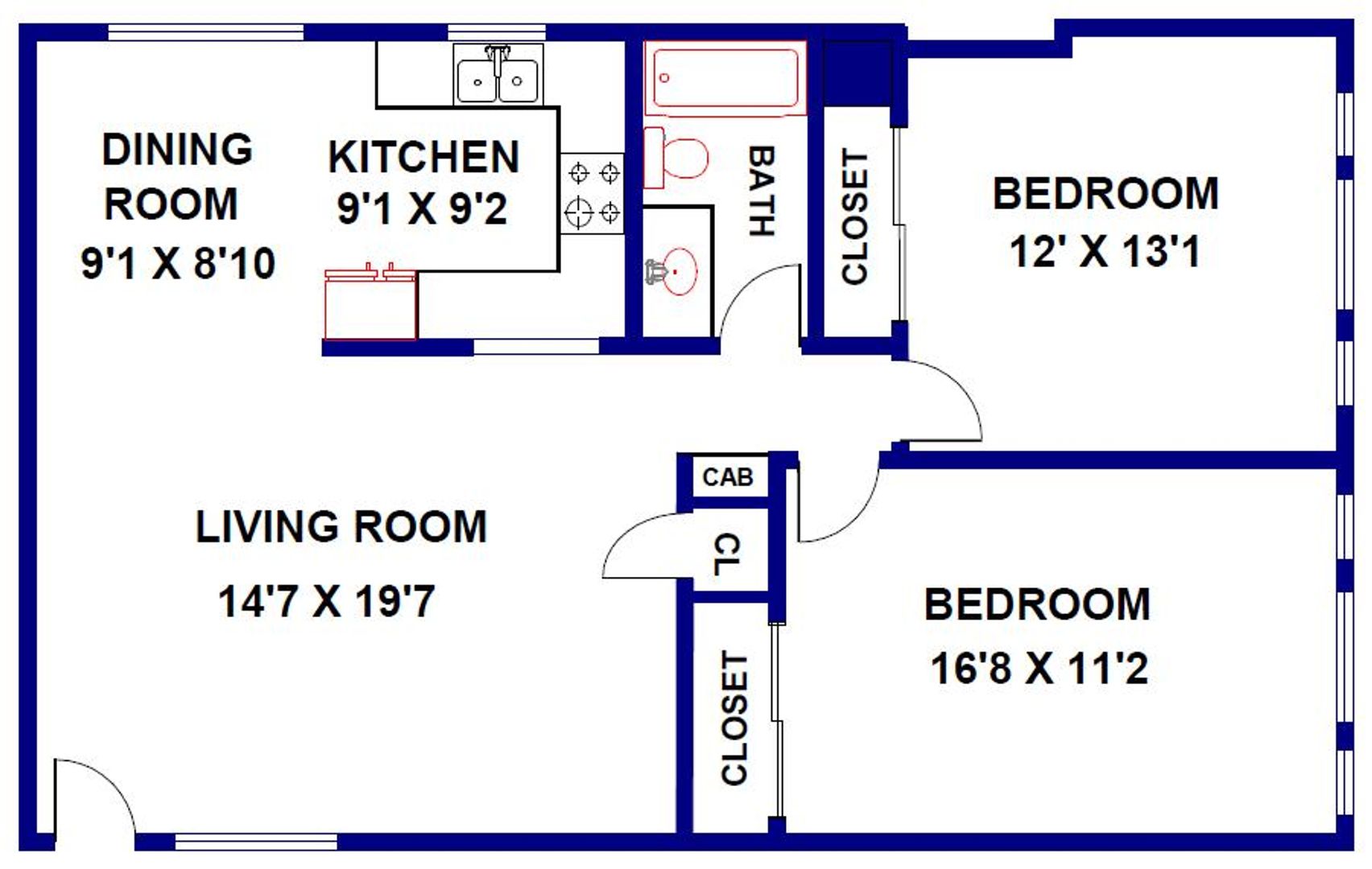 2 Bedroom, 1 Bath apartment