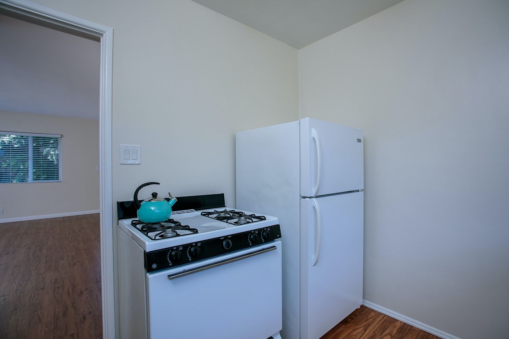 Kitchen w/ stove and refrigerator